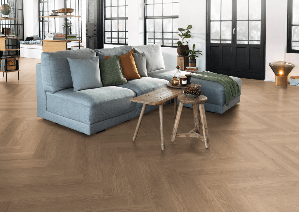 Brown Baronia Oak NatureSense Herringbone HDF Laminate by Egger