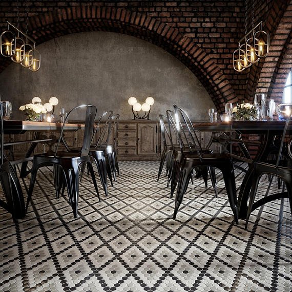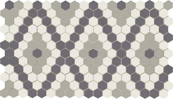 Ice White / Black / Lt Smoke Hexagon Hex Unglazed Mosaics Porcelain by American Olean
