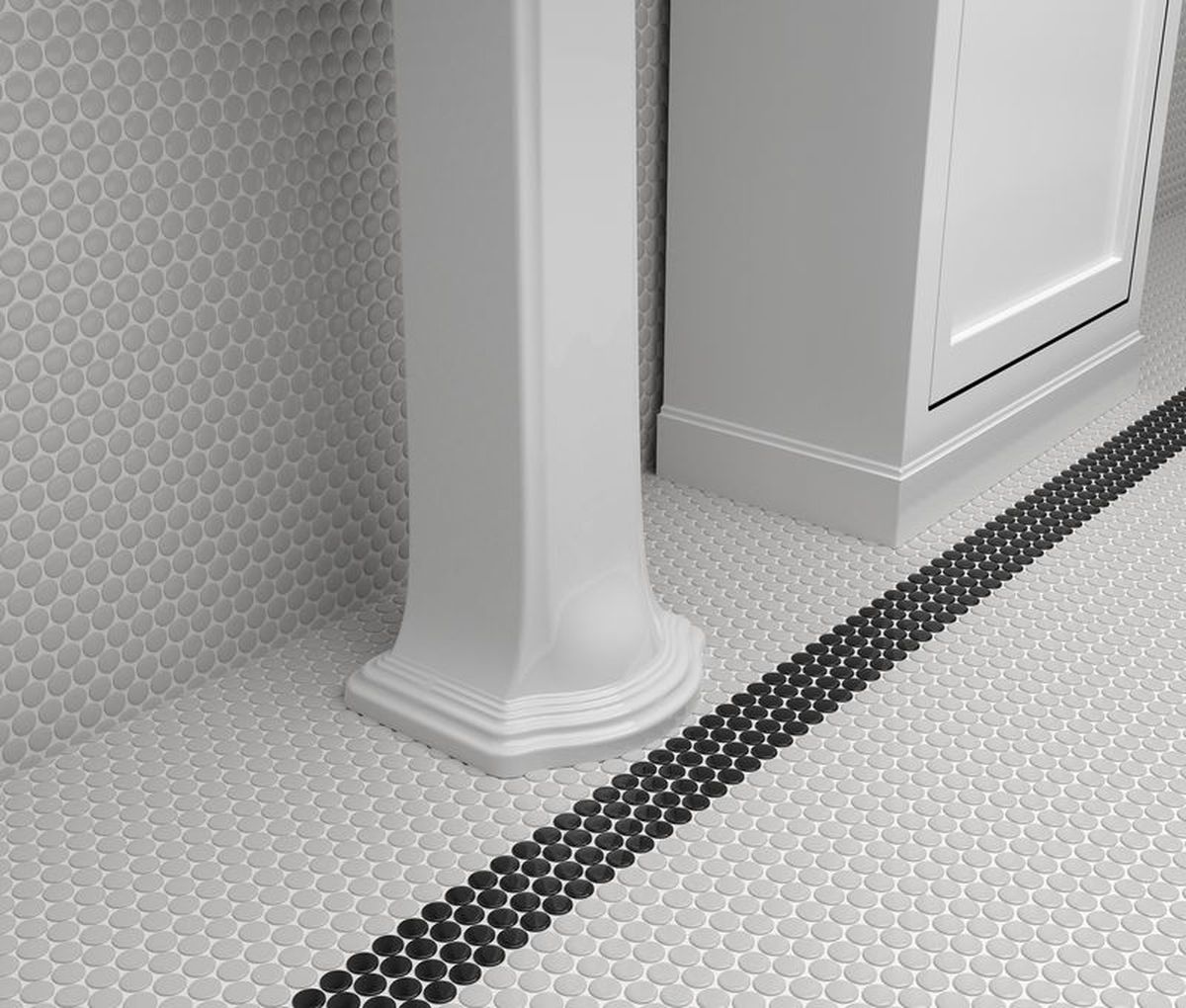 PEARL GLOSSY 3/4 INCH PENNY ROUND PORC MOS Porcelart Porcelain by Anthology Tile